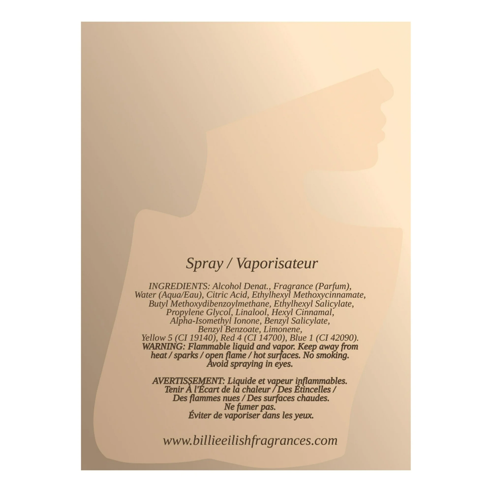 Billie Eilish Eau de Parfum, Perfume for Women, 1.0 oz is a warm, sweet, and sensual fragrance crafted for those who love to express their individuality with confidence. It opens with inviting top notes of sugared petals, mandarin, and red berries, creating a sweet and fresh first impression. As the scent settles, the heart reveals a creamy blend of vanilla, soft spices, and cocoa, adding depth and warmth to the composition. The fragrance finishes with comforting base notes of warm musks, tonka bean, and sleek woods that leave a long-lasting, memorable trail. Formulated with vegan and clean ingredients, this perfume is paraben-free and features eco-conscious packaging made using 100% wind energy with a biodegradable cello wrap. Compact and stylish in its 1.0 oz bottle, it is perfect for everyday wear, travel, or on-the-go touch-ups, making it a signature scent that feels powerfully personal and uniquely you.